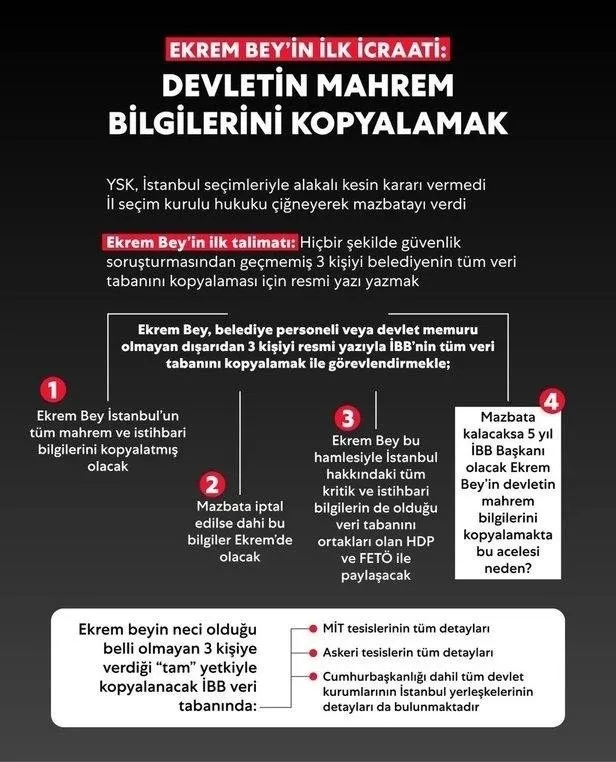 Ekrem İmamoğlu'nun hiçbir güvenlik soruşturmasından geçmeyen ve herhangi bir belediye çalşanı olmayan 3 kişiye belediyenin tüm mahrem bilgilerini teslim etmesi büyük tepki çekti.
