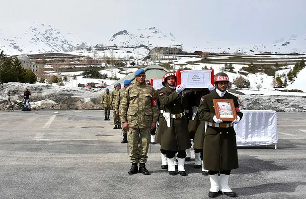 Dağ ve Komando Tugay Komutanlığındaki törende, şehit piyade sözleşmeli erler Erhan Çiyapul, Murat Şahin, Şevket Çetin ve Yener Kırıkcı'nın Türk bayrağına sarılı naaşları alana getirildi.