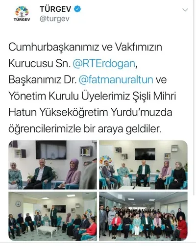 Başkan Recep Tayyip Erdoğan, Türkiye Gençlik ve Eğitime Hizmet Vakfı (TÜRGEV) Şişli Mihri Hatun Yükseköğretim Kız Öğrenci Yurdu'nu ziyaret etti.