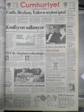 5 MAYIS 1994: SHP Genel Başkanı ve Başbakan Yardımcısı Murat Karayalçın, seçimin iptal kararlarının solda birliğin sağlanması için ciddi bir fırsat olduğunu açıkladı. SHP MYK toplantısında, yenilenecek seçimler için solda birliğin sağlanması amacıyla çalışma yapılması kararlaştırıldı. Karayalçın, "İptal kararları, solda birliğin gerçekleşmesi için ciddi bir fırsat" dedi.