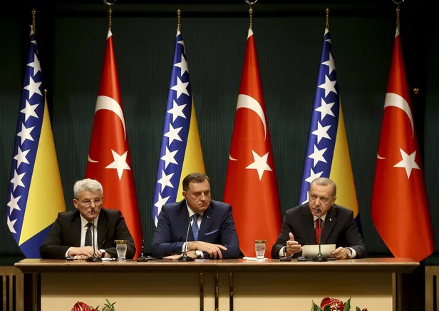 Başkan Erdoğan, Bosna Hersek Devlet Başkanlığı Konseyi Üyelerini kabulü ardından anlaşmaların imza töreni ve ortak basın toplantısında açıklamalarda bulundu.