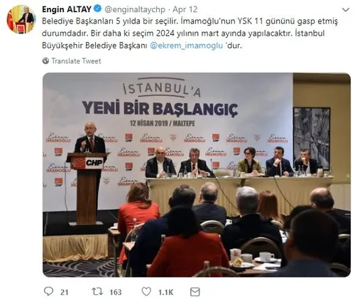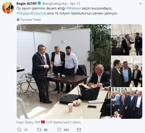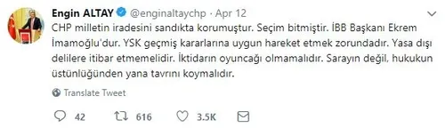 YSK'nın itirazları görüştüğü süreçte, CHP İstanbul milletvekili Engin Altay, AK Parti'nin hak arayışından rahatsız olmuştu. Altay, itiraz sürecinin Türkiye'yi "ekonomik ve askeri yönden" zorda bırakacağını ifade ederek tehdit savurmuştu.