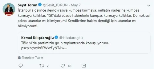YSK'nın İstanbul seçimlerini tekrar etme kararının ardından saldırıya geçen CHP'liler, yargı mensuplarına tehditler savurdu. Birkaç gün öncesine kadar CHP’liler için en güvenilir kurum olan YSK ne oldu da CHP’liler için şimdi hain ve çete oldu? AK Parti İstanbul Milletvekili Abdullah Güler konuya ilişkin açıklamalarda bulundu.