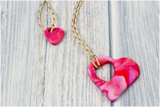 Fimo hamurlarını duymuşsunuzdur. Artık bu hamurları neredeyse tüm kırtasiyelerden bulabilirsiniz. Öncelikle yapmanız gereken şey bir kırtasiyeye gidip birkaç renk fimo hamuru istemek. Eve geldiğiniz zaman bu hamurlardan iki veya üç tanesini birbirine karıştırın böylece kalpli kolye ucunuzun içerisinde farklı renk geçişleri olacaktır. Daha sonra hazırladığınız hamuru orta kalınlıkta bir tabaka haline getirin ve oklava yardımı ile biraz açın. Bundan sonra yapacağınız işlem hamura kalp şeklini vermek olacaktır. Kalp şeklini verirken üst tarafına küçük bir delik açmayı unutmayın. Bu işlemi yaptıktan sonra hazırladığınız kalp şeklini fırına koyun ve orta derecede bir süre fırının içinde bekletin.
