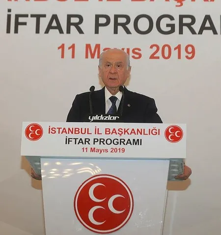 Devlet Bahçeli, partisinin İstanbul İl Başkanlığınca WOW Airport Hotel düzenlenen "Beka için milli karar, cumhur için istikrar" temalı iftar programında yaptığı konuşmada, Türkiye'nin ve İstanbul'un istikbalini güvenceye almak mecburiyetinde, birliğe, dirliğe, kardeşliğe ve bekaya sahip çıkmak mesuliyetinde olduklarını vurguladı.