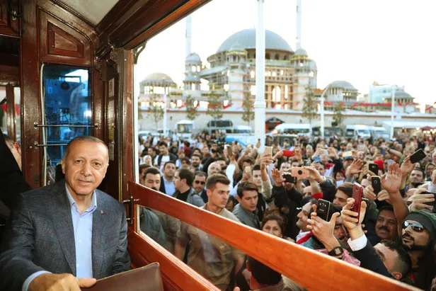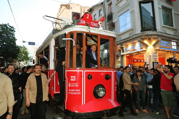 Cumhurbaşkanı Erdoğan, tekrar nostaljik tramvayla Taksim Meydanı'na geldi.