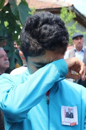 Şehidin babası Şaban Kapaklıkaya, cenaze namazı için saf tutmaya geldiğinde büyük torunu Ramazan'a sarılıp öperek gözyaşı döktü.