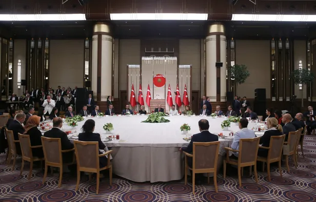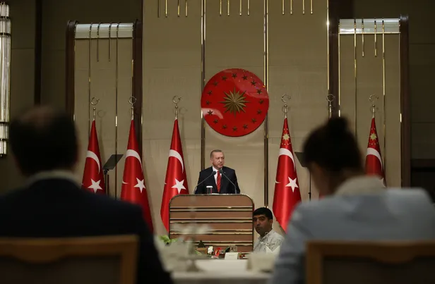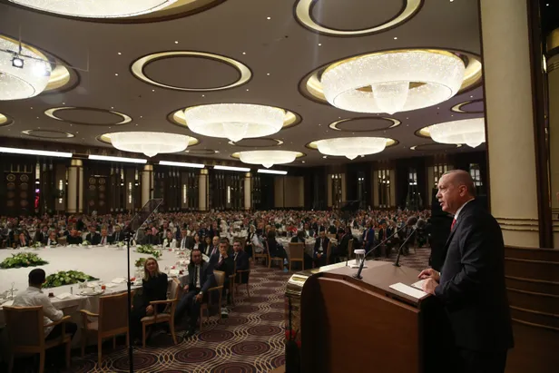 Cumhurbaşkanlığı Külliyesi'nde, milletin evinde, gazi mekanda eğitim çalışanlarıyla bir araya gelmekten duyduğu mutluluğu dile getiren Erdoğan, "Her birinize ayrı ayrı şükranlarımı sunuyorum. Bu salondaki siz kardeşlerim başta olmak üzere tüm eğitimcilerimizin, öğretmenlerimizin, öğrencilerimizin Ramazan-ı Şerifini tebrik ediyorum." diye konuştu.