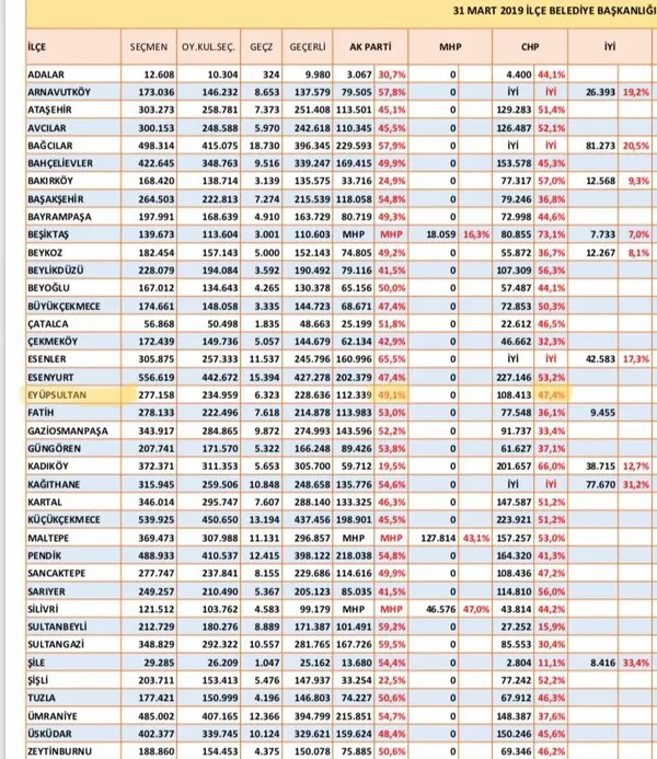 CHP'nin; Eyüpsultan ilçe belediye başkanlığını 3 bin 936 oyla kaybetmesine rağmen oyların yeniden sayılması için itiraz etmediği de öğrenildi. CHP'nin Eyüpsultan ilçesinde 6 bin 323 oyun geçersiz olmasına rağmen Eyüp İlçe Seçim Kurulu'na itiraz etmemesi dikkat çekici bulundu.