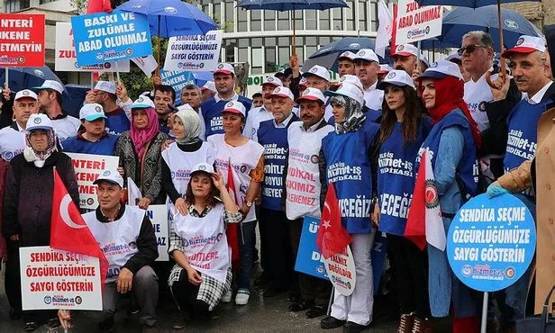 AK Parti'den CHP ve HDP'ye geçen belediyelerde çalışanlara yapılan sendika baskısı sürüyor. Tehdit ve baskı yoluyla istifa ettirilen işçi sayısı 10 günde 1.320 kişi arttı. Böylece sayı 11 bin 795'ten 13 bin 115'e ulaştı. Ağrılıklı olarak İstanbul Küçükçekmece Bolu, Antalya, Bilecik ve Manisa gibi belediyelerde süren yıldırma operasyonları sonrası Hak-İş Konfederasyonuna bağlı Hizmet-İş Sendikası'ndan 11 bin 308, Öz Güven- Sen'den bin 143, Öz Taşıma-İş Sendikası'ndan 664 işçi baskıyla sendikalarından istifa ettirildi. Hak-İş Konfederasyonu Başkanı Mahmut Arslan, SABAH'a özel açıklamalarda bulundu. Arslan, "Belediye başkanlarının görevi halka daha iyi hizmet etmek. Böyle yapan belediye başkanları ile sorunumuz olamaz. Mazbatayı alır almaz sendikalarımıza karşı operasyon peşine düşen, belediye başkanlığı makamını ideolojik mücadele malzemesine dönüştüren, yetkilerini üyelerimizi mağdur etmeye yönelik operasyon aracı olarak kullananlara itirazımız var. Üyelerimizi başka sendikalara üye olmaya çalışan belediye başkanlarına karşı hukuki mücadele edeceğiz. İşten çıkartılan arkadaşlarımız işlerine dönene kadar mücadelemizi sürdüreceğiz" dedi.