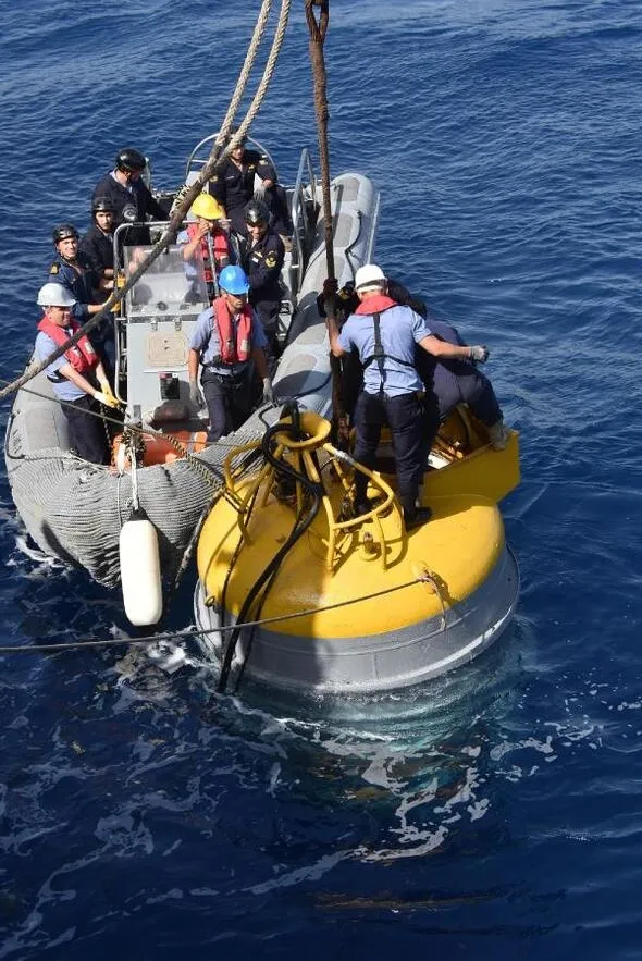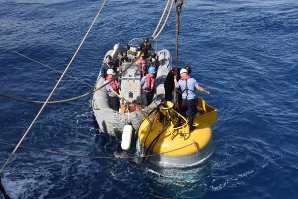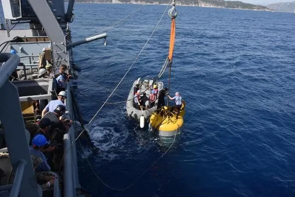 Su yüzeyinden 67 metre aşağıda bulunan denizaltıdaki personele, tek pilotun kullandığı Atmosferik Dalış Sistemi (ADS) ile içerisinde yiyecek, ilaç ve yedek parça bulunan acil destek yaşam paketi ulaştırıldı.