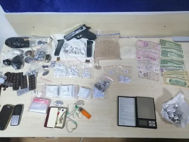 Özellikle sokak satıcısı olarak kullandıkları kişilere okul önlerinde satış yaptırdıkları belirlenen zanlıların ev ve iş yerlerinde yapılan aramada, bir kilogram eroin, iki kilogram afyon sakızı, 400 gram metanfetamin, 500 uyuşturucu hap, bir tabanca, iki şarjör, çok sayıda mermi, bir hassas terazi ve uyuşturucu ticaretinden elde ediliği belirlenen 5 bin lira nakit para ele geçirildi.