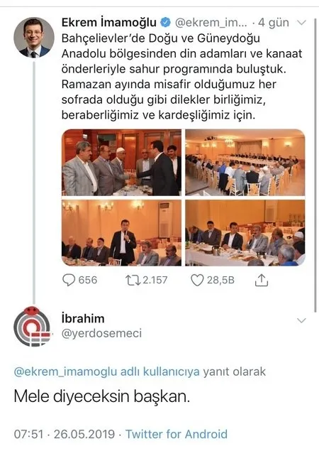 Öte yandan CHP'nin İstanbul'a 10 Kürt dini lideri Mele getirttiği ve önümüzdeki günlerde 34 Tarikat-Cemaat Lideri Mele'nin daha İstanbul'a geleceği bildirildi. "Türkiye Cumhuriyeti şeyhler, dervişler, müritler, meczuplar memleketi olamaz." söylemini kullanan Fatih Portakal'ın bu konu hakkında da tek bir tweet atmamasına rağmen Binali Yıldırım'ın ziyaretini kullanarak AK Parti ve Yıldırım'ı saldırması sosyal medyada büyük tepkiyle karşılandı.
