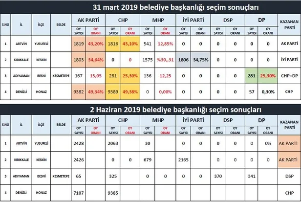 Artvin'in Yusufeli ilçesinde, 31 Mart'taki Mahalli İdareler Genel Seçimleri'nde yapılan itirazlar üzerine Yüksek Seçim Kurulu'nca (YSK) yenilenen belediye başkanlığı seçimini, resmi olmayan sonuçlara göre AK Parti Adayı Eyüp Aytekin kazandı. Seçimlerde, AK Parti adayı Eyüp Aytekin 2 bin 428 oy alırken, en yakın rakibi CHP Adayı Barış Demirci de 2 bin 63 oyda kaldı.