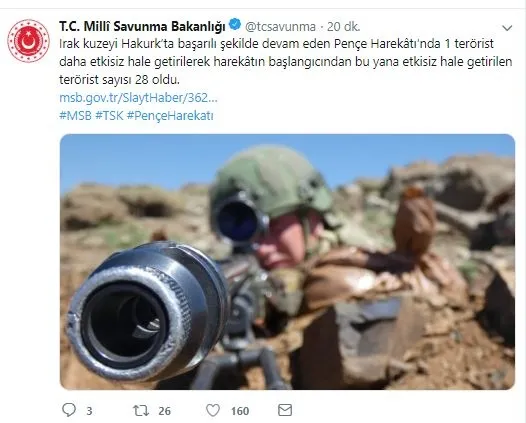 Milli Savunma Bakanlığının Twitter hesabından, 27 Mayıs'ta başlayan harekata ilişkin bilgilendirme yapıldı.