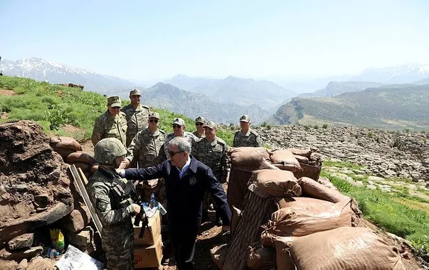 Balkayalar bölgesinde sınırın sıfır noktasındaki 2 bin 400 rakımlı üs bölgesine gelişinde birlik komutanından hudut tekmili alan Akar, daha sonra mevzideki askerlerle tek tek sohbet etti. Askerlerin bayramını kutlayan Akar, Hakurk bölgesini gören üs bölgesindeki faaliyetlere ilişkin brifing aldı.