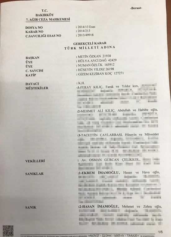 Ekrem İmamoğlu'nun, ortağı olduğu İmamoğlu İnşaat Ticaret ve Limited Şirketi'nin Beylikdüzü'nde inşaa ettiği 'Beykonakları' projesinde 'dolandırıcılık' yaptığı iddiasıyla babası Hasan İmamoğlu ile sanık olduğu belirlendi.