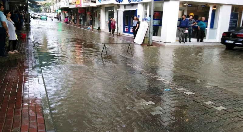 Saat 15.15 sularında başlayan ve bardaktan boşalırcasına yağan yağmurla birlikte önceki dönemlerde de su baskınlarının yaşandığı Enstitü, Hürriyet ve Gazi caddelerinde bilindik görüntüler ortaya çıktı. Mazgalların yetersiz kaldığı yağışla birlikte caddeler, sokaklar dereye dönüştü. Yükselen su dükkanlara kadar girdi. Hürriyet ve Gazi caddelerinin bazı noktalarında vatandaşlar mazgal kapaklarını açarak suyu tahliye etmeye çalıştı. Mazgal kapaklarında biriken çöpler ise dikkatleri çekti. Caddelerde suların yükselmesi sonrası Ödemiş İlçe Emniyet Müdürlüğü ekipleri Enstitü ve Hürriyet caddelerini yaşanabilecek olumsuzluklara karşı trafiğe kapattı. Çarşı bölgesinin yanı sıra Atatürk Mahallesinde Saraçoğlu Stadının hemen yanında Çamlık'ta bulunan dükkanlarda, Stat Sokak'ta su baskınları yaşandı, vatandaşlar İZSU'dan yardım istedi. Sanayi sitesinde de su baskınları meydana geldi.
