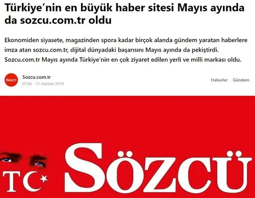 Uluslararası alanda herkes tarafından kabul görülen ve otorite sayılan Gemius'un verilerini görmezden gelen Sözcü.com.tr, hiçbir ciddi ve resmi kurum tarafından baz alınmayan dijital ölçüm şirketi SimilarWeb'in manipülatif ve dayanaksız verilerine dayanarak kendisini "Türkiye'nin en çok ziyaret edilen yerli ve milli markası" ilan etti.
