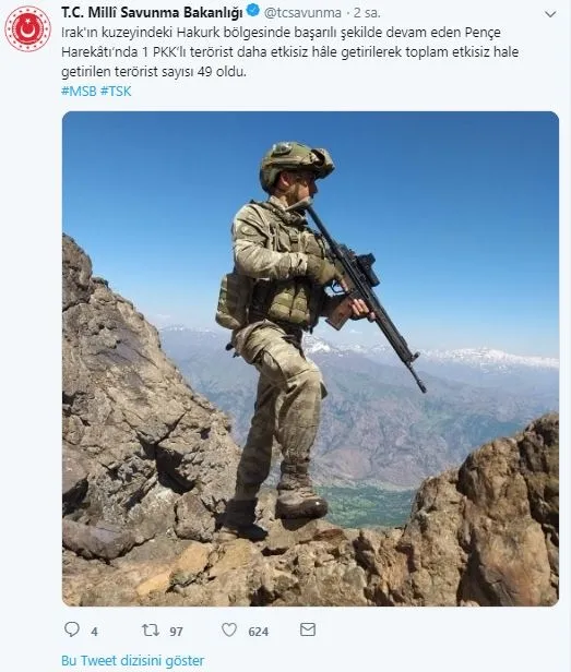 Açıklamada harekatın başlangıcından bu yana etkisiz hale getirilen terörist sayısının 49 olduğu belirtildi.