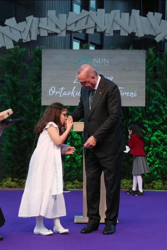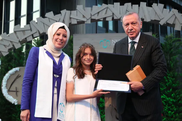 Başkan Erdoğan torunu Mahinur Albayrak'ın mezuniyet törenine katıldı. Erdoğan, torunu Emine Mahinur Albayrak'a mezuniyet belgesini takdim etti.