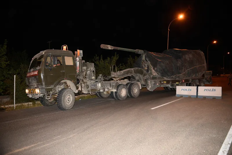 Türkiye'deki farklı birliklerden gönderilen obüs yüklü tır ve mühimmat yüklü kamyonlardan oluşan 15 araçlık konvoy, Ceylanpınar ilçesine giriş yaptı.