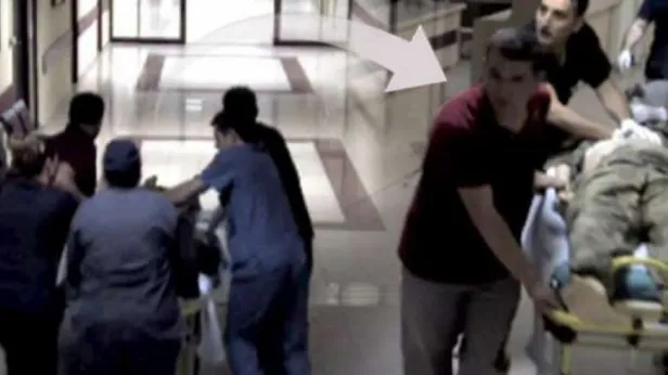 Saat 03.13'te sivil kıyafetli Ali Kapusuz'un ittiği bir sedyeyle taşınırken görülen Semih Terzi'ye bir doktor tarafından kalp masajı yapıldı.