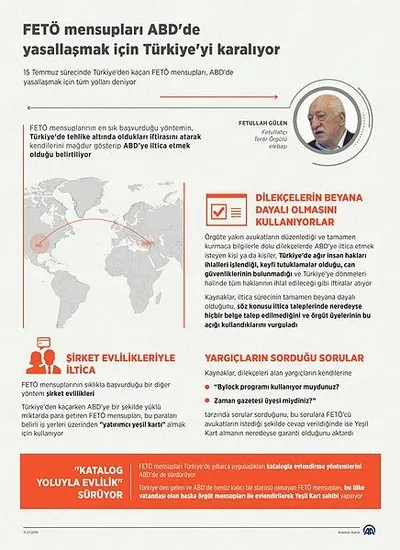 FETÖ mensuplarının en sık başvurduğu yöntemin, Türkiye'de tehlike altında oldukları iftirasını atarak kendilerini mağdur gösterip ABD'ye iltica etmek olduğu belirtiliyor.