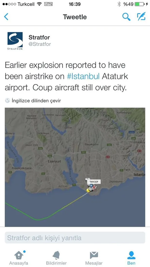 Stratfor yetkilileri, uçağı hızla nasıl tespit ettiklerini ve darbe girişiminin yaşandığı bir ortamda bunları sosyal medyada neden paylaştıklarını tam anlamıyla açıklayamadı.