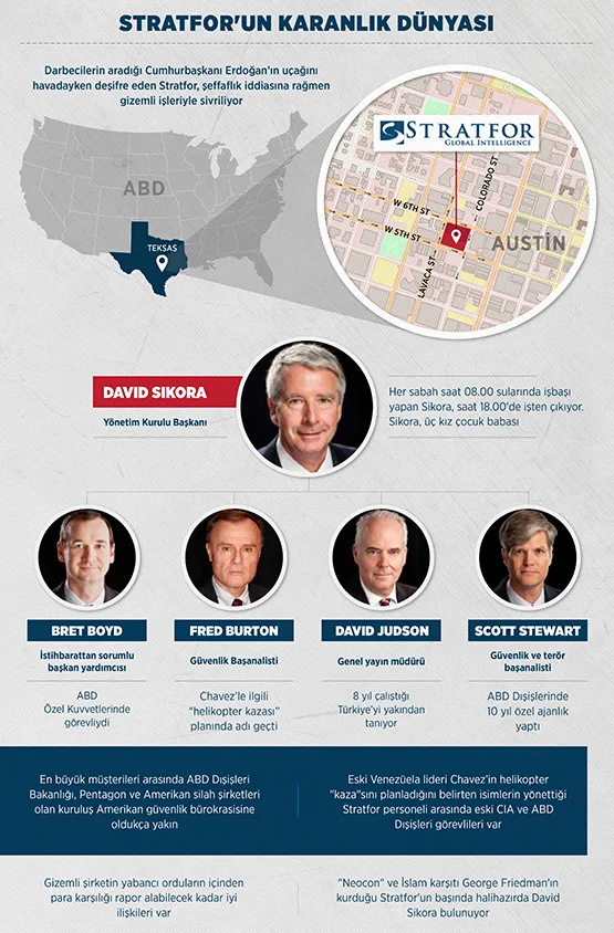Stratfor'un üst kademesindeki çalışanlarının istihbarat konularındaki geçmişi dikkati çekiyor.