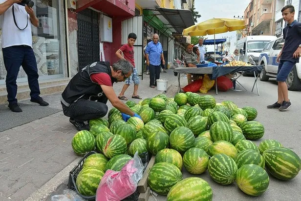 Narkotik ekibi, bölgedeki bir semt pazarına girerek sebze ve meyve tezgahlarında da arama yaptı. Ekip, tezgahlardaki karpuz ve soğanların arasına gizlenmiş uyuşturucu olup olmadığını kontrol etti.