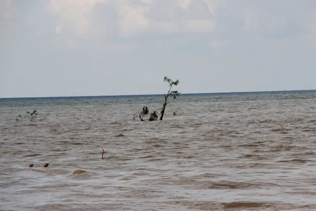 Yine sel sularının sürüklediği büyük bir ağaç ise sahilden 500 metre açıkta deniz içinde dikili bir şekilde kaldığı havadan çekilen görüntülere yansıdı. Görüntülerin devamında Akçakoca açıklarında Karadeniz'in sularının sel suları ile iki renge bürünmesi görünüyor.