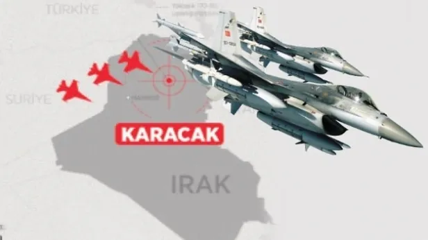 Türk Silahlı Kuvvetleri'ne (TSK) ait savaş uçakları, terör örgütü PKK'nın lojistik üs olarak kullandığı Karacak Dağı'nı bombaladı. İHA'ların tespit ettiği hedefler, 20'ye yakın F-4 ve F-16'dan fırlatılan lazer güdümlü milli füzelerle vuruldu. Türkiye-Irak sınırından yaklaşık 180 kilometre içerde yapılan harekâtla, terör örgütüne "hiçbir yerde güvende değilsiniz" mesajı verildi."Terörle kaynağında mücadele" konseptiyle sınır ötesinde terör örgütü PKK'ya büyük darbe indiren TSK, Irak'ın kuzeyindeki harekâtlarına bir yenisi daha ekledi. Hakurk'taki PKK hedeflerine yönelik Pençe Harekatı ile komandolar terör yuvalarına girmeyi sürdürürken, örgütün bölgede lojistik üssü olan ve Suriye ile bağlantısını sağlayan Karacak Dağı ve çevresindeki hedefler, hava harekâtıyla vuruldu.