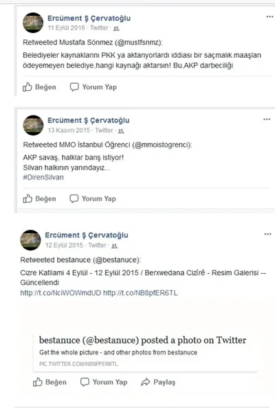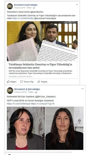 Hızlı Atatürkçü Çervatoğlu'nun yakından takip ettiği, açıklamalarını heyecanla paylaştığı isimler arasında Salih Müslim, Leyla Zana ve Figen Yüksekdağ da var.