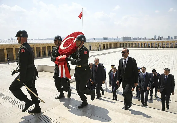 Erdoğan başkanlığında, Cumhurbaşkanı Yardımcısı Fuat Oktay, Milli Savunma Bakanı Hulusi Akar, Adalet Bakanı Abdulhamit Gül, İçişleri Bakanı Süleyman Soylu, Hazine ve Maliye Bakanı Berat Albayrak, Milli Eğitim Bakanı Ziya Selçuk, Dışişleri Bakanı Mevlüt Çavuşoğlu, Genelkurmay Başkanı Orgeneral Yaşar Güler, Kara Kuvvetleri Komutanı Orgeneral Ümit Dündar, Deniz Kuvvetleri Komutanı Oramiral Adnan Özbal ve Hava Kuvvetleri Komutanı Orgeneral Hasan Küçükakyüz Aslanlı Yol'dan geçerek, mozoleye çıktı.