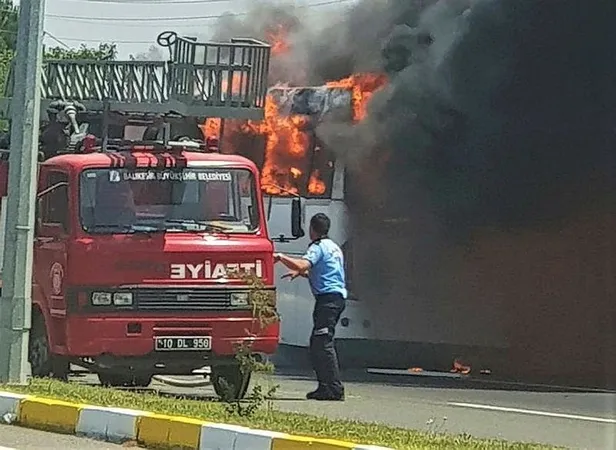 Son dakika: Balıkesir'de otobüs yangını: Çok sayıda ölü var