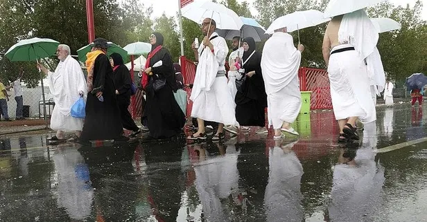 Duadan yaklaşık 1 saat sonra etkili olan gök gürültülü sağanak, çadırlarında bulunan hacıları kısa sürede dışarı çıkarttı. Hacılar, yağmur damlalarıyla serinledi.