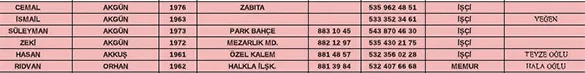 Bu isimlerin ardından Akgün, birinci dereceden akrabası olan Cemal Akgün, Süleyman Akgün, İsmail Akgün ve Zeki Akgün'ü belediyenin çeşitli birimlerine kadrolu işçi olmalarını sağladı. AKŞAM'ın ele geçirdiği listede akraba-eş-dost tavsiyesiyle çok sayıda personelin kadro dolu olmasına rağmen işe alındıkları ortaya çıktı. Listede personelin kim olduğu, kimin tavsiyesi olduğu yazıyor.