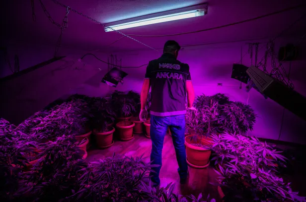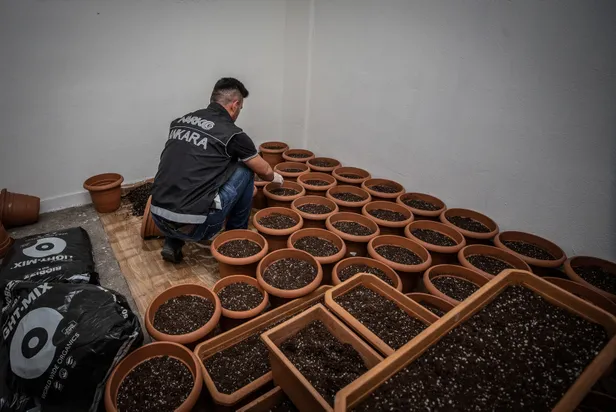 Yakalanan bu kişilerin bir odayı Hint keneviri yetiştirmek için düzenek kurdukları görüldü.