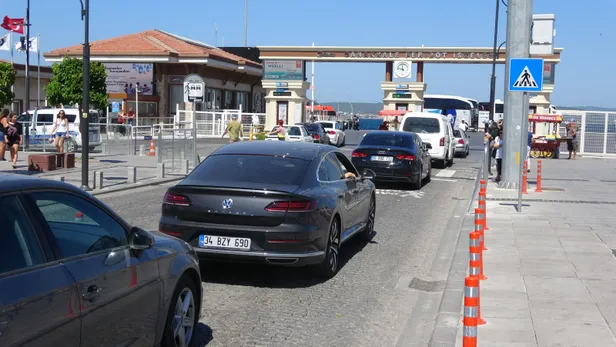 Kurban Bayramı’nın üçüncü gününde dönüş hazırlığına başlayan tatilciler, özellikle Trakya Bölgesi ve İstanbul’a doğru hareket etmek için Çanakkale İskelesinde uzun araç kuyruğu oluşturdu.