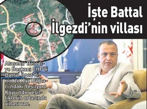CHP'li Ataşehir Belediye Başkanı Battal İlgezdi'nin ailesinin de Kaz Dağları'nın hemen yanında Çanakkale Ayvacık'a bağlı Yeşilyurt'ta 174 ada 29 parselde 2 katlı villası var. SABAH; İmamoğlu ailesinin Kaz Dağları'nda aldığı arsalarda yapılan ağaç katliamının fotoğraflarına ulaştı. Tapu Kadastro Genel Müdürlüğü'nün internet sitesinde; İmamoğlu ailesine ait ada ve parseller sorgulandığında arsaların bir kısmında dairelerin yapıldığı, arsa olarak gözüken alanlara da ağaçların bulunmadığı görülüyor. Ekrem İmamoğlu'nun, Çanakkale Eceabat Bigali Köyü'nde de 478.89 metrekare bahçeli kargir evi bulunuyor. İmamoğlu'nun söz konusu iki evinin yakınında ağaçların bulunduğu görülüyor. Söz konusu evlerin de ağaçlar kesilerek yapıldığı iddia ediliyor.