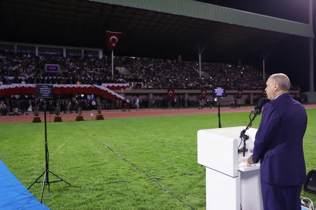 Şu anda bu stadyumun içerisinde tek millet, tek bayrak, tek vatan, tek devlet olarak geleceğe yürüyoruz.