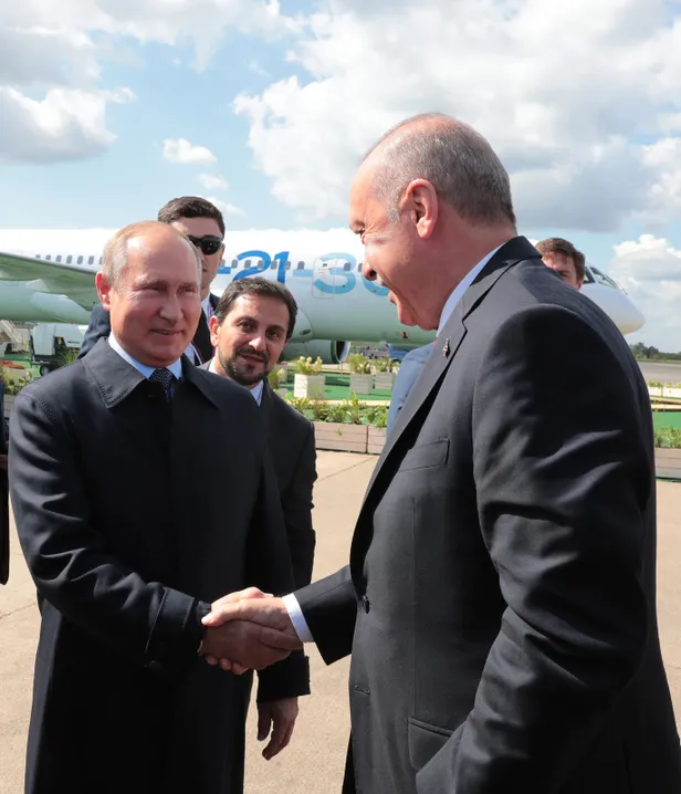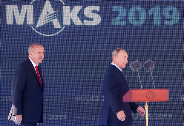 Başkan Erdoğan, günübirlik çalışma ziyareti kapsamında MAKS-2019 Uluslararası Havacılık ve Uzay Fuarı'nın Açılış Töreni'ne katıldı. Erdoğan ve Putin ortak basın toplantısı düzenledi.