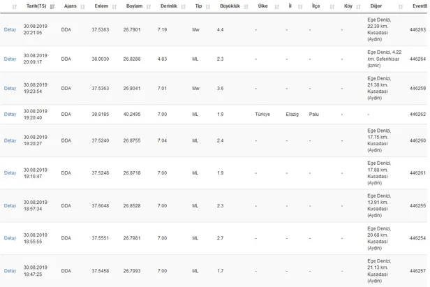 2019.08.30 20:09:18 38.0452 26.9402 4.7 -.- 2.3 -.- KUSADASI KORFEZI (EGE DENIZI)