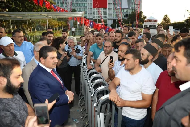 İBB önünde iki gündür, işe dönmek için bekleyişlerini sürdürün işçileri akşam saat 19.00'da ziyaret eden Başkan Göksu, "AK Parti Grubu olarak sizlerin verdiği haklı mücadelenin yanındayız" dedi.