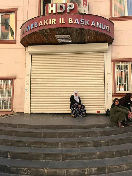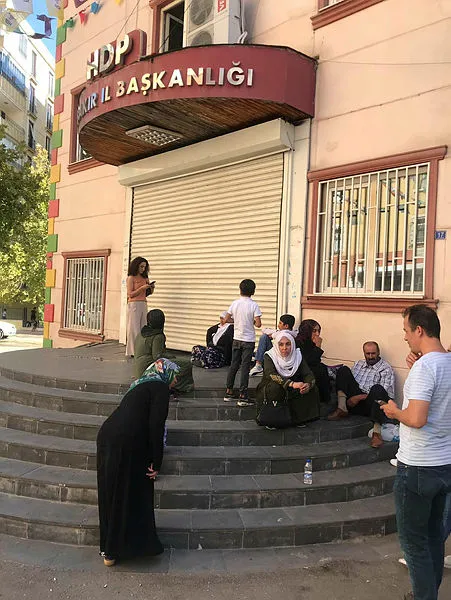 HDP Diyarbakır İl Başkanlığı önünde oturma eylemi yapanların sayısı artınca, parti binası girişindeki kepenk HDP'lilerce kapatıldı. Kapatılan kepenge rağmen 3 aile, HDP Diyarbakır İl Başkanlığı önünde oturma eylemini sürdürüyor.