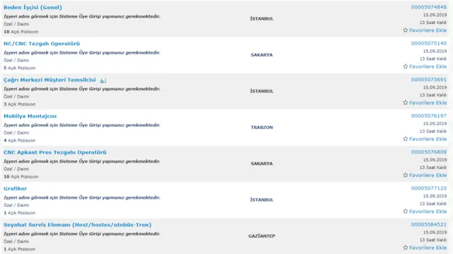 15 EYLÜL İŞKUR İŞ İLANLARI