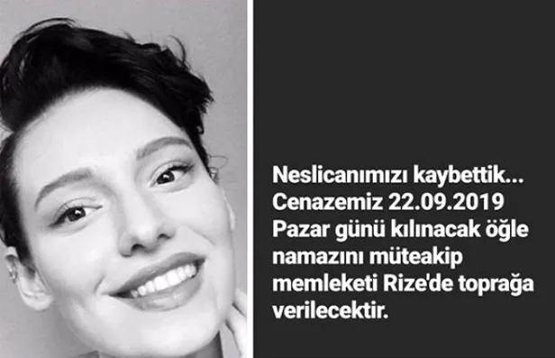 Ölümüyle tüm Türkiye'yi yasa boğan Neslican Tay'ın ailesi yaptığı açıklamada, "Nelicanımızı kaybettik... Cenazemiz 22.09.2019 Pazar günü kılınacak öğle namazına müteakip memleketi Rize'de toprağa verilecektir" denildi.