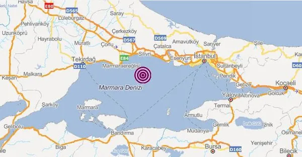 Marmara Denizi Silivri açıklarında 4.6 büyüklüğünde deprem meydana geldi. AFAD, saat 11.00'de meydana gelen depremin merkez üssünün Marmara Denizi'nde Silivri açıkları, büyüklüğünün ise 4.6 olduğunu duyurdu. Deprem İstanbul ve çevre illerde hissedildi. Yaşanan depremin ardından uzmanlar korkutan uyarılarda bulundu.