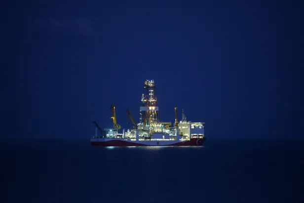 Altıncı nesil ultra derin deniz sondaj gemisi Yavuz, hem ihtişamıyla hem de geceyi aydınlatan ışıklarıyla dikkati çekti.